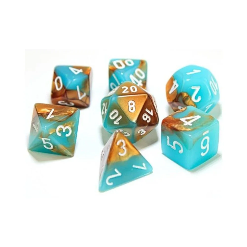 Copper-Turquoise with White Gemini Polyhedral 7-Die Set Chessex CHX30019