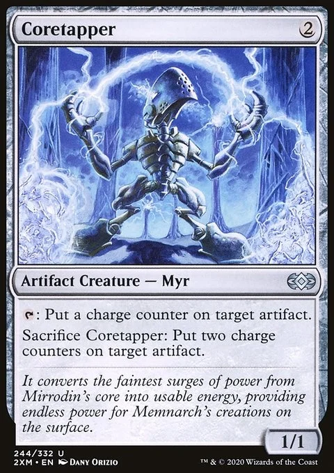 {T}: Put a charge counter on target artifact. Sacrifice Coretapper: Put two charge counters on target artifact.