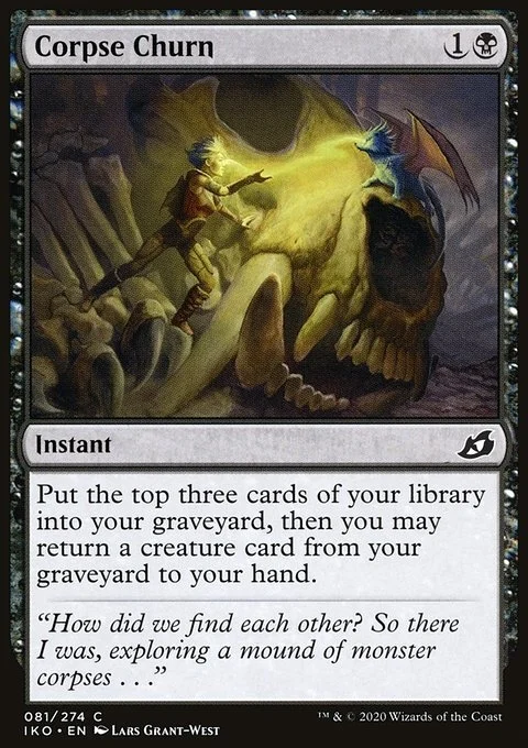 Mill three cards, then you may return a creature card from your graveyard to your hand. (To mill three cards, put the top three cards of your library into your graveyard.)