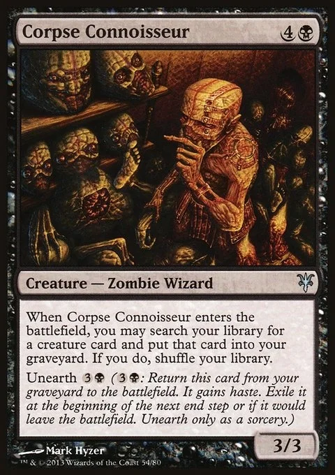 When Corpse Connoisseur enters, you may search your library for a creature card, put that card into your graveyard, then shuffle.