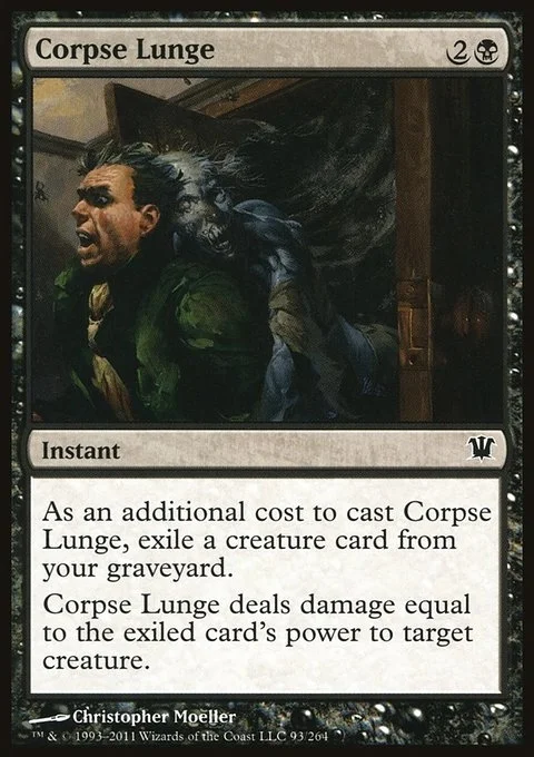 As an additional cost to cast this spell, exile a creature card from your graveyard. Corpse Lunge deals damage equal to the exiled card's power to target creature.