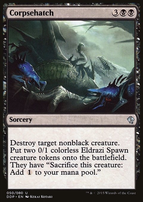 Destroy target nonblack creature. Create two 0/1 colorless Eldrazi Spawn creature tokens. They have "Sacrifice this creature: Add {C}."