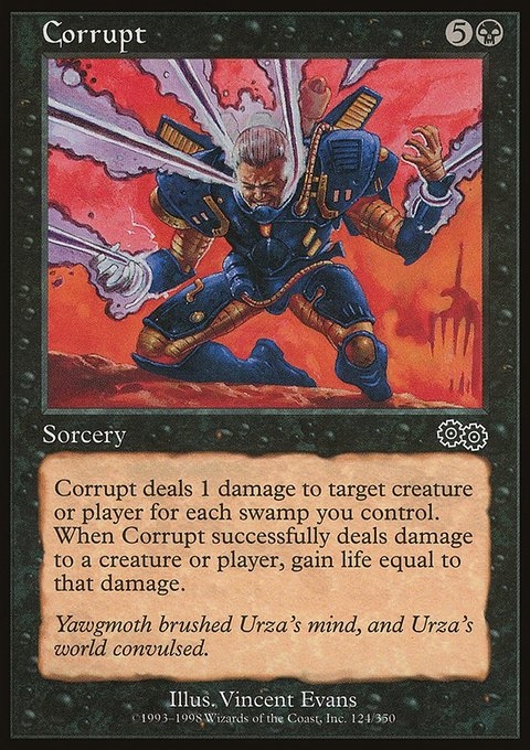 Corrupt deals damage to any target equal to the number of Swamps you control. You gain life equal to the damage dealt this way.