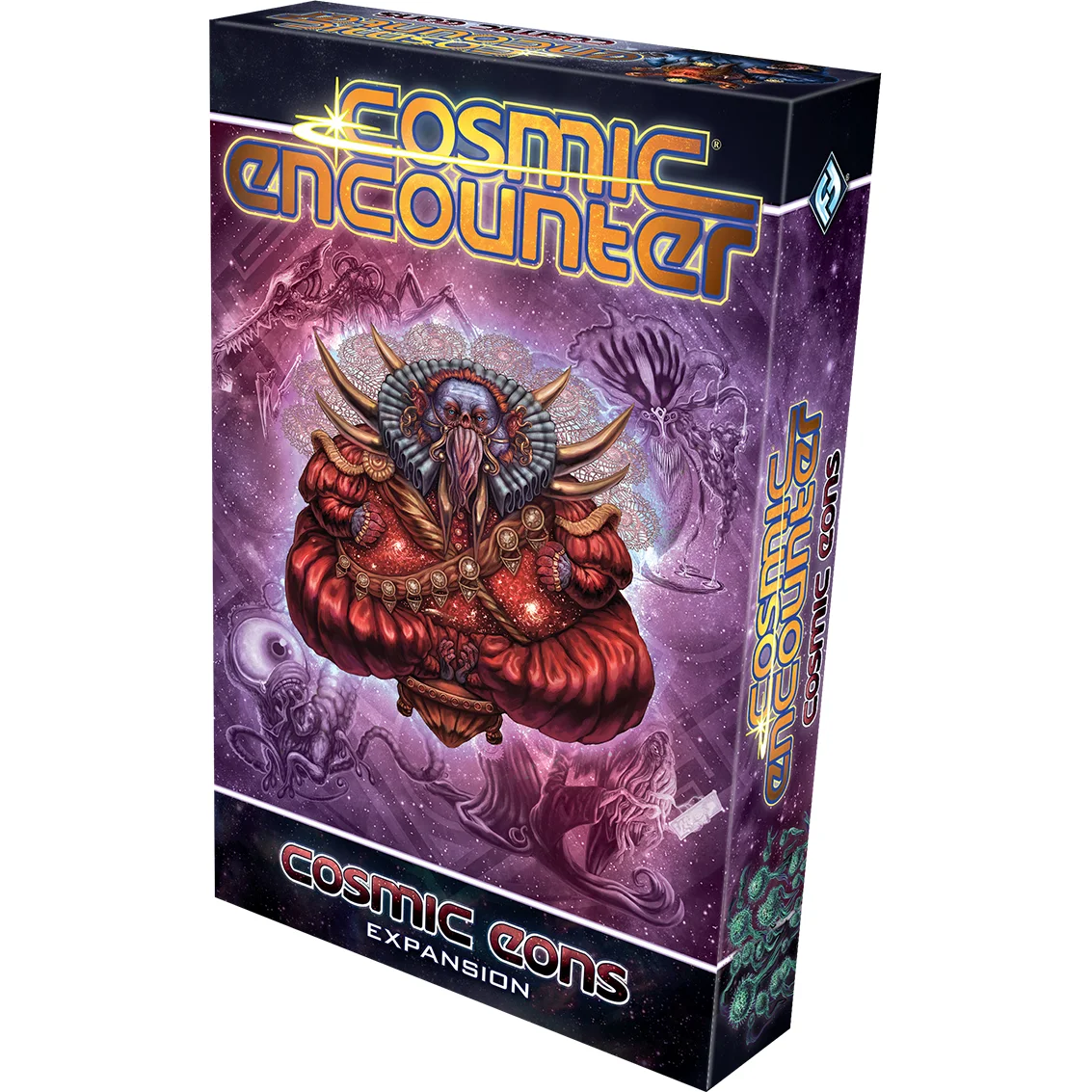 The galaxy continues to grow with Cosmic Eons, the sixth expansion for the beloved game Cosmic Encounter. Cosmic Eons features a Hidden Alliances in which players decide their alliances secretly and reveal them simultaneously, adding suspense, bluffing and possibly even backstabbing to the Alliance Phase. Thirty new aliens enter the game, including several who begin the game with essence cards that enable players to help, fine, traumatize, and even give bad dreams to their opponents.
