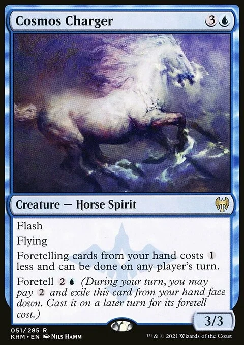 Flash Flying Foretelling cards from your hand costs {1} less and can be done on any player's turn. Foretell {2}{U} (During your turn, you may pay {2} and exile this card from your hand face down. Cast it on a later turn for its foretell cost.)