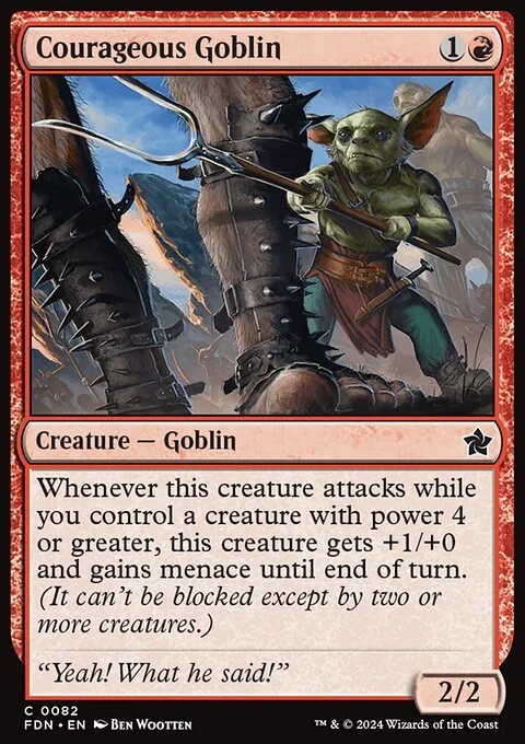 Whenever this creature attacks while you control a creature with power 4 or greater, this creature gets +1/+0 and gains menace until end of turn. (It can't be blocked except by two or more creatures.)
