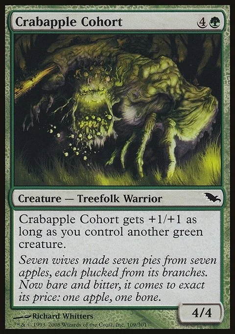 Crabapple Cohort gets +1/+1 as long as you control another green creature.