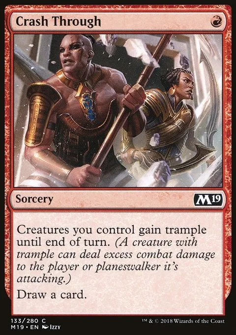 Creatures you control gain trample until end of turn. (Each of those creature can deal excess combat damage to the player or planeswalker it's attacking.) Draw a card.