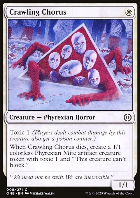 Toxic 1 (Players dealt combat damage by this creature also get a poison counter.) When this creature dies, create a 1/1 colorless Phyrexian Mite artifact creature token with toxic 1 and "This token can't block."