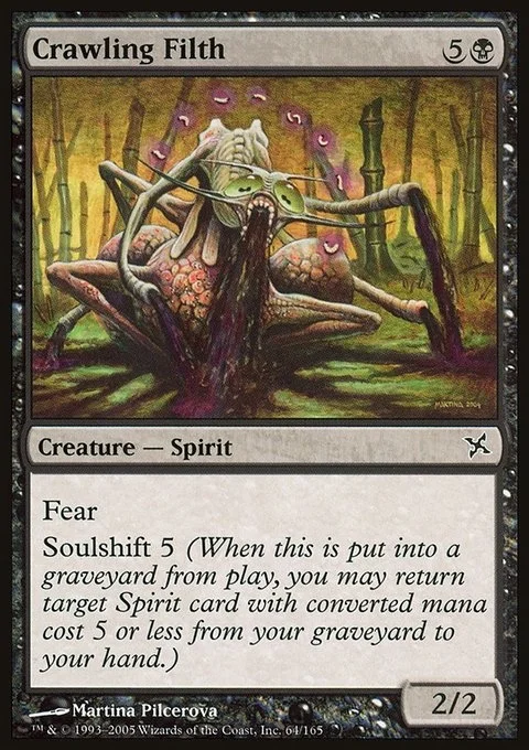Fear (This creature can't be blocked except by artifact creatures and/or black creatures.) Soulshift 5 (When this creature dies, you may return target Spirit card with mana value 5 or less from your graveyard to your hand.)