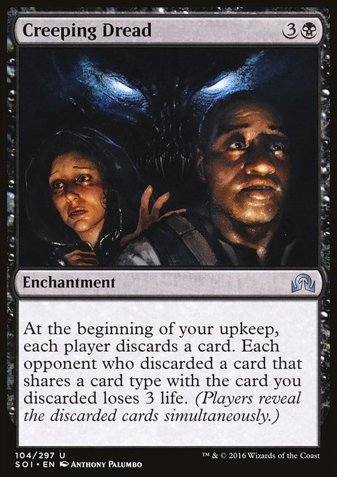 At the beginning of your upkeep, each player discards a card. Each opponent who discarded a card that shares a card type with the card you discarded loses 3 life. (Players reveal the discarded cards simultaneously.)