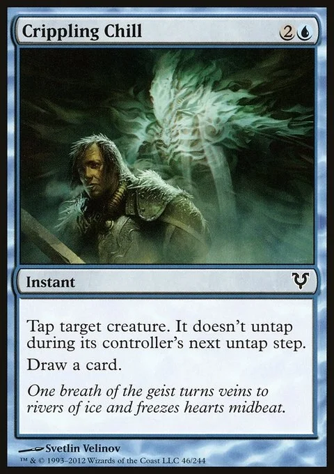 Tap target creature. It doesn't untap during its controller's next untap step. Draw a card.