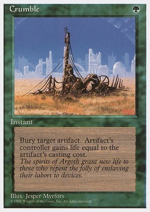 Bury target artifact. Artifact’s controller gains life equal to the artifact’s casting cost.