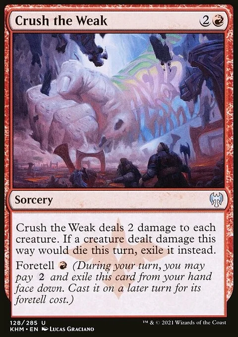 Crush the Weak deals 2 damage to each creature. If a creature dealt damage this way would die this turn, exile it instead.