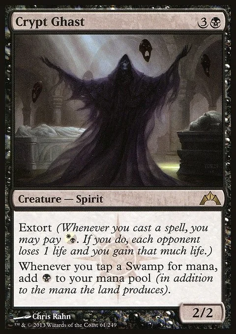Extort (Whenever you cast a spell, you may pay {W/B}. If you do, each opponent loses 1 life and you gain that much life.) Whenever you tap a Swamp for mana, add an additional {B}.
