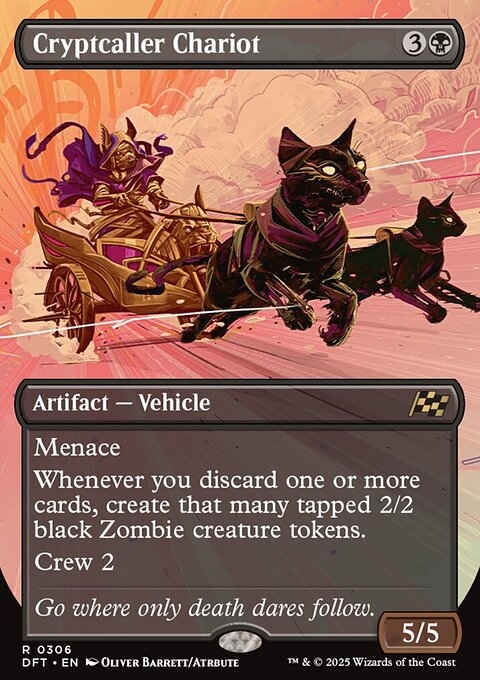 Menace Whenever you discard one or more cards, create that many tapped 2/2 black Zombie creature tokens. Crew 2