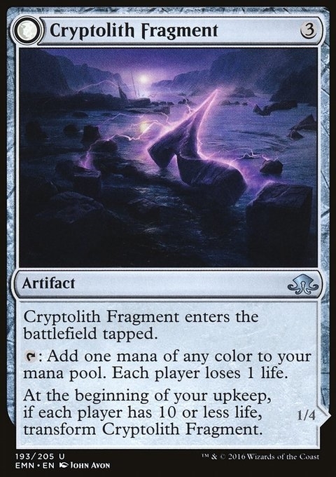 At the beginning of your upkeep, if each player has 10 or less life, transform Cryptolith Fragment.