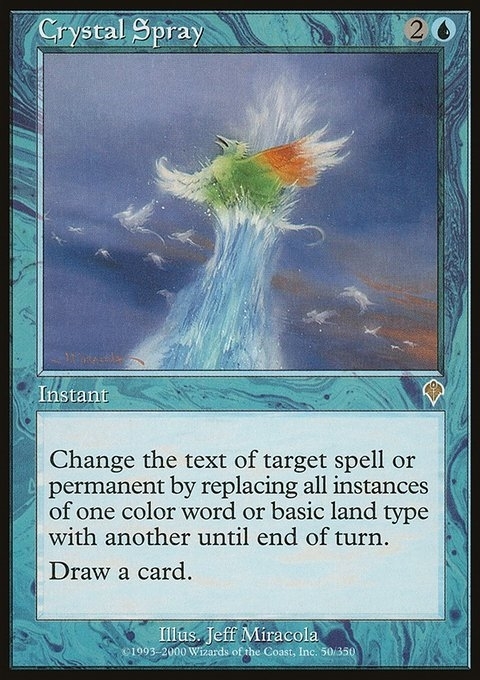 Change the text of target spell or permanent by replacing all instances of one color word or basic land type with another until end of turn.