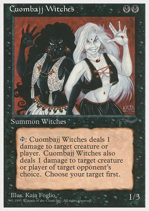 {T}: Cuombajj Witches deals 1 damage to any target and 1 damage to any target of an opponent's choice.
