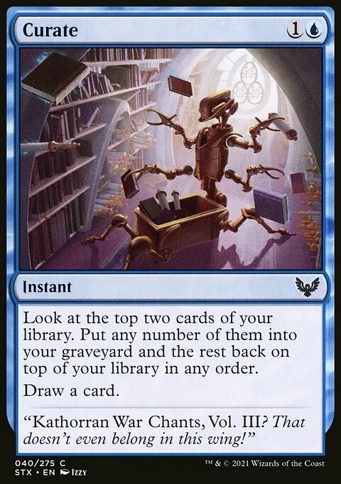 Look at the top two cards of your library. Put any number of them into your graveyard and the rest back on top of your library in any order. Draw a card.