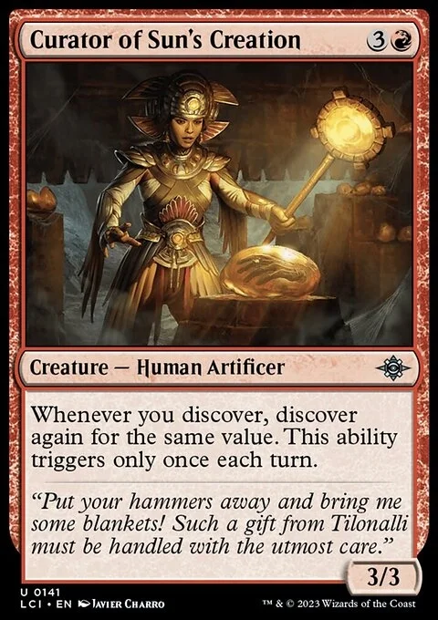 Whenever you discover, discover again for the same value. This ability triggers only once each turn.