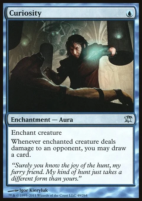 Enchant creature Whenever enchanted creature deals damage to an opponent, you may draw a card.