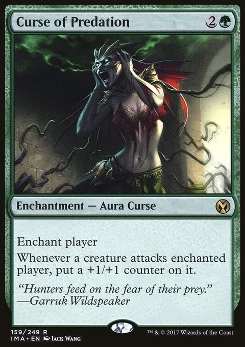 Enchant player Whenever a creature attacks enchanted player, put a +1/+1 counter on it.