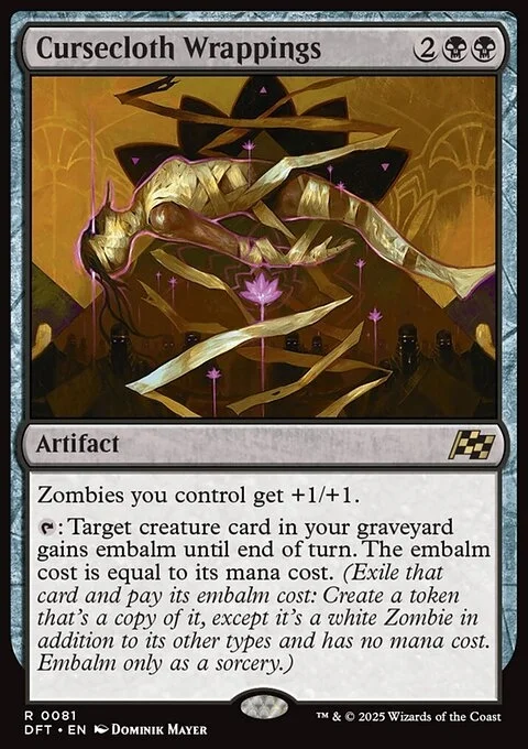 Zombies you control get +1/+1. {T}: Target creature card in your graveyard gains embalm until end of turn. The embalm cost is equal to its mana cost. (Exile that card and pay its embalm cost: Create a token that's a copy of it, except it's a white Zombie in addition to its other types and has no mana cost. Embalm only as a sorcery.)