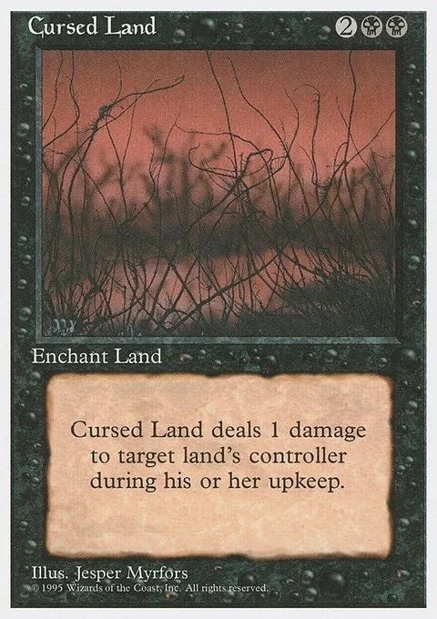 Cursed Land deals 1 damage to target land’s controller during his or her upkeep.