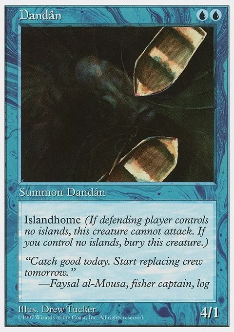 Dandân can't attack unless defending player controls an Island. When you control no Islands, sacrifice Dandân.