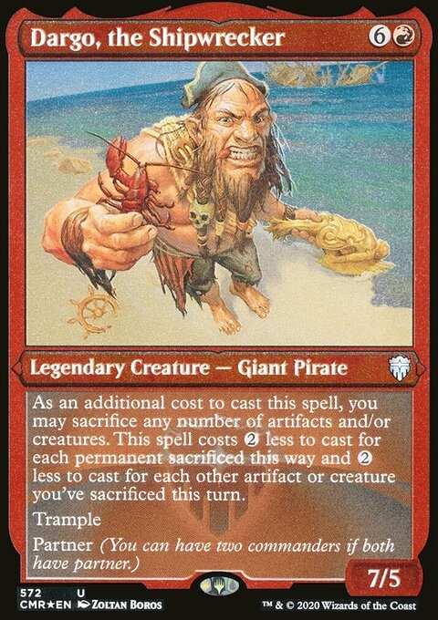 As an additional cost to cast this spell, you may sacrifice any number of artifacts and/or creatures. This spell costs {2} less to cast for each permanent sacrificed this way and {2} less to cast for each other artifact or creature you've sacrificed this turn. Trample Partner (You can have two commanders if both have partner.)