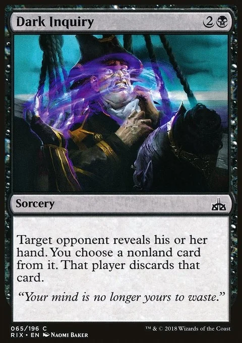 Target opponent reveals their hand. You choose a nonland card from it. That player discards that card.