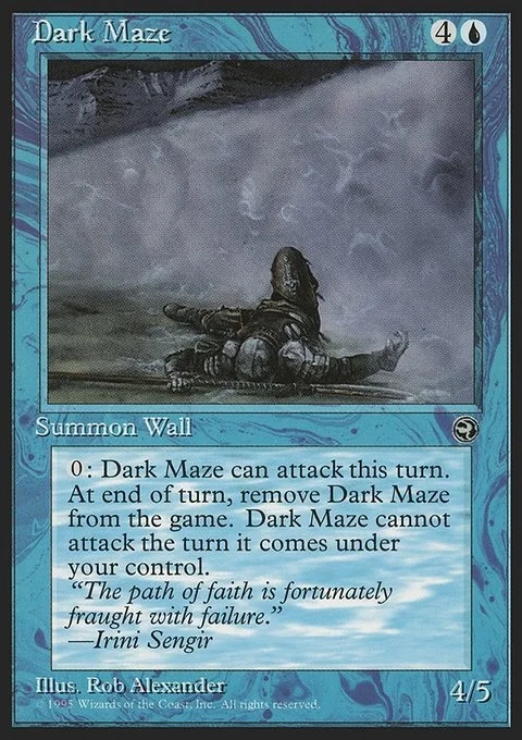 Defender (This creature can't attack.) {0}: Dark Maze can attack this turn as though it didn't have defender. Exile it at the beginning of the next end step.