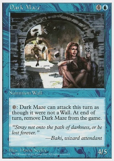 Defender (This creature can't attack.) {0}: Dark Maze can attack this turn as though it didn't have defender. Exile it at the beginning of the next end step.