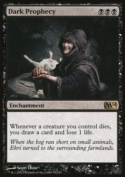 Whenever a creature you control dies, you draw a card and you lose 1 life.