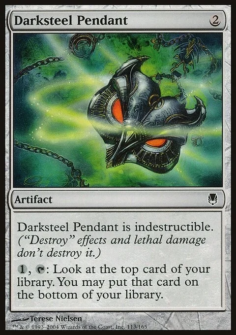 Indestructible (Effects that say "destroy" don't destroy this artifact.) {1}, {T}: Scry 1. (Look at the top card of your library. You may put that card on the bottom.)