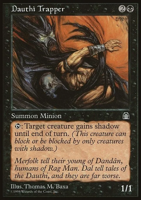 T: Target creature gains shadow until end of turn. (This creature can block or be blocked by only creatures with shadow.)