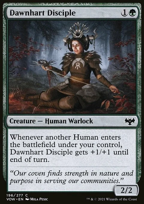 Whenever another Human you control enters, this creature gets +1/+1 until end of turn.
