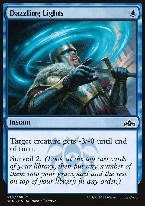 Target creature gets -3/-0 until end of turn. Surveil 2. (Look at the top two cards of your library, then put any number of them into your graveyard and the rest on top of your library in any order.)