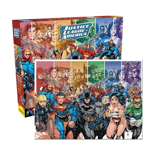 Made up of the Worlds Greatest DC Super Heroes, the Justice League is truly a team that is greater than its parts. Since its inception, its membership has constantly changed and evolved to meet each new threat. Celebrate the Justice League with a look at their past in this impressive 1,000 piece puzzle.