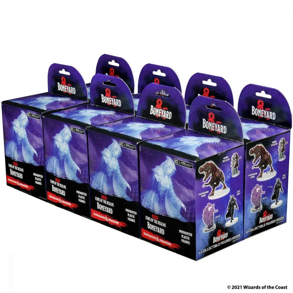 Boneyard includes hordes of undead for you to battle, including Vampires and the powerful Death Knight, Skeletons, Zombies, and Ghouls also bring their dread presence to the set, giving you all-new and exciting options for encounters in your game. Your party may even be unfortunate enough to come face to face with a Tyrannosaurus Zombie!