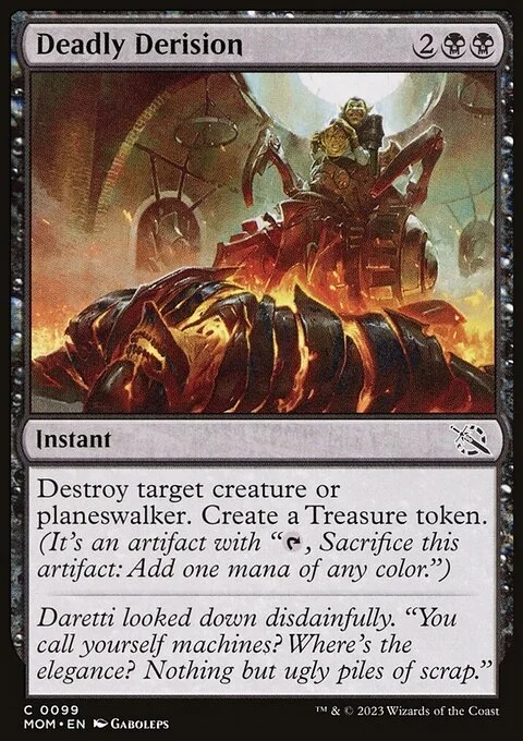 Destroy target creature or planeswalker. Create a Treasure token. (It's an artifact with "{T}, Sacrifice this token: Add one mana of any color.")