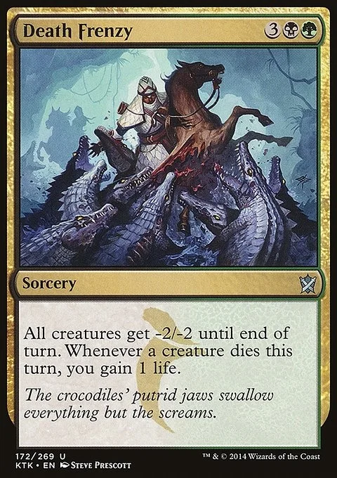 All creatures get -2/-2 until end of turn. Whenever a creature dies this turn, you gain 1 life.