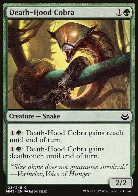 {1}{G}: This creature gains reach until end of turn. {1}{G}: This creature gains deathtouch until end of turn.