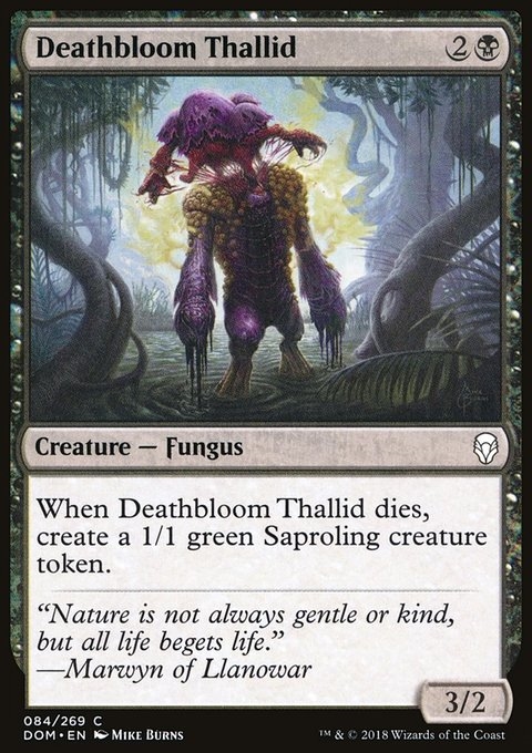 When Deathbloom Thallid dies, create a 1/1 green Saproling creature token.