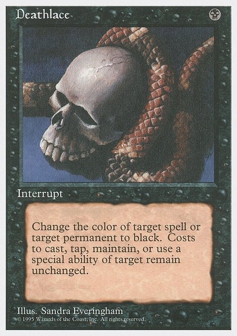 Change the color of target spell or target permanent to black. Costs to cast, tap, maintain, or use a special ability of target remain unchanged.