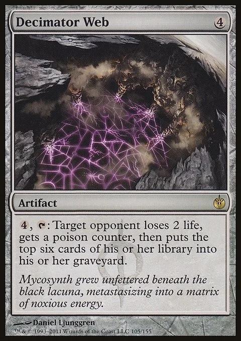 {4}, {T}: Target opponent loses 2 life, gets a poison counter, then puts the top six cards of their library into their graveyard.