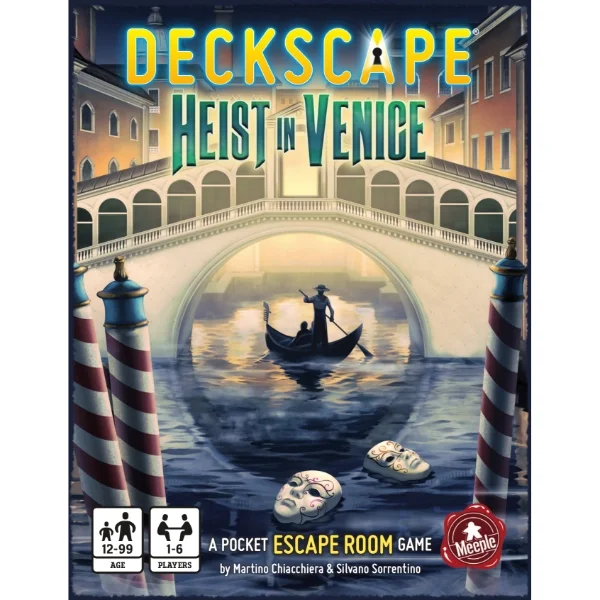 In Deckscape: Heist in Venice, players take on the role of retired professional thieves; a mysterious letter forces them to reform the gang. The mission is daring: to sneak into the oldest casino in the world, in Venice, to steal a 1 billion euro chip. Each player chooses a character with unique skills and abilities; only with everyone's help will it be possible to bypass the casino's intricate security systems and escape with the loot!