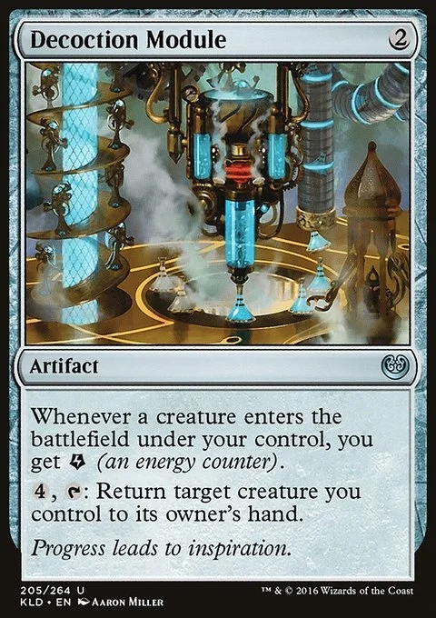 Whenever a creature enters the battlefield under your control, you get {E} (an energy counter). {4}, {T}: Return target creature you control to its owner's hand.
