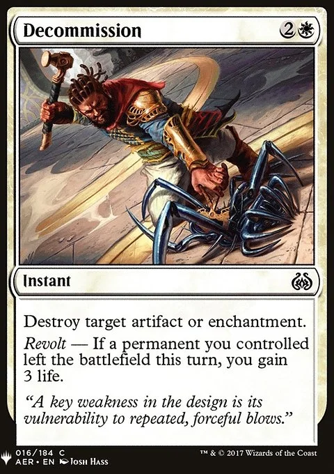 Destroy target artifact or enchantment. Revolt — If a permanent left the battlefield under your control this turn, you gain 3 life.
